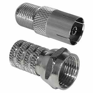 Набор F-RG6 штекер F+переход F(гнездо)-TV(гнездо) 1шт+1шт серебро