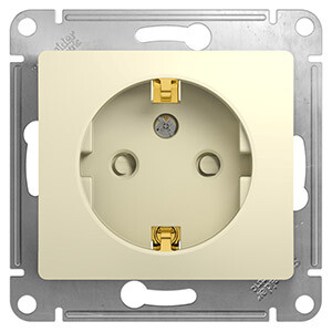 Розетка одноместная Schneider Electric GSL000245 Glossa (16 А, IP20) скрытой установки, с заземлением и защитными шторками, бежевый