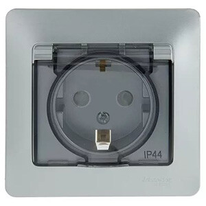 Розетка Systeme Electric (ранее Schneider Electric) серии Glossa (в сборе, цвет алюминий) одинарная с заземлением, шторкам и и крышкой подходит для сетей 250 В, на ток 16 А. Изделие со степенью защиты IP44 обеспечит безопасность использования в ванной и на кухне. Заземляющий контакт обеспечивает дополнительную защиту от удара электрическим током. При наличии заземления электрический потенциал уходит в землю, защищая человека. Выполнен из материала PС+ASA, стойкого к УФ-излучению и появлению царапин.
