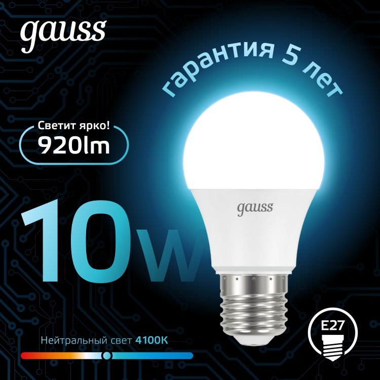 Лампа Gauss A60 обеспечивает яркое и вместе с тем эффективное освещение, позволяя вам сэкономить как электроэнергию для всех, так и собственные деньги на стоимости электричества. Световая температура 4100К способствует созданию спокойной атмосферы и будет уместна при любом интерьере помещения. Лампа изготовлена из современных материалов, рассчитана но долгую и бесперебойную работу, гарантирует уверенное освещение на работе и дома.