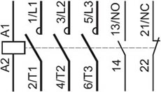 Cовместим с блоками вспомогательных контактов LAEN..., со вспомогательным контактом с задержкой срабатывания LAETSD, с фильтром помех LAERC... RC, механической блокировкой LAEM..., комплектом перемычек силовой цепи LAEP...