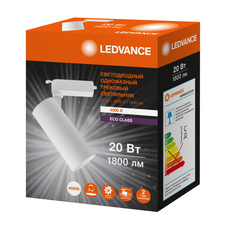 Светильник на трек однофазный свд 20Вт 4000К 1800лм белый Ledvance