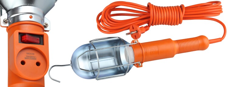 Светильник переноска 60Вт Е27 7м IP20 с выключателем розетка ЭРА