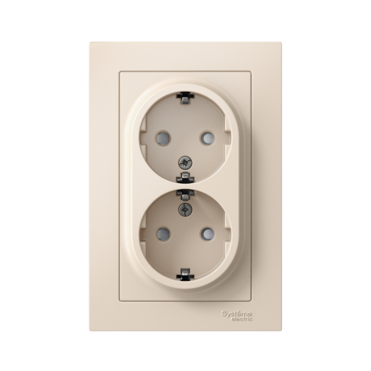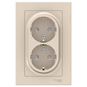 Розетка двухместная Schneider Electric ATN000226 AtlasDesign (16 А) скрытой установки, с заземлением и защитными шторками, бежевый