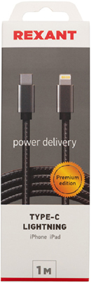 Кабель USB Type-C - USB-Lightning PD Rexant 18-7054 (5 В, нейлоновая оплетка), темно-серый, 1 м