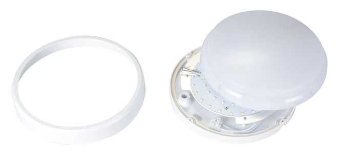 Установка.Крепится на ровные, прочные поверхности. Применяется для внутреннего освещения общественных зданий. Возможно использовать для наружного освещения, при условии, что светильник устанавливается под навесом. Монтажные винты в комплекте. Монтаж светильника производится защелкиванием корпуса в металлическую крепежную скобу, предварительно закрепленную на опорной поверхности. Конструкция. Корпус из поликарбоната, рассеиватель ударопрочный матовый поликарбонат. Встроенный драйвер входит в комплект поставки. Индекс цветопередачи: Ra 75.Частота: 50-60 Гц. Коэффициент пульсации: 5%. Коэффициент мощности: cos 0,5. Климатическое исполнение: УХЛ2. Светильники, предназначенные для установки непосредственно на поверхности из нормально воспламеняемых материалов. Форма: круг.