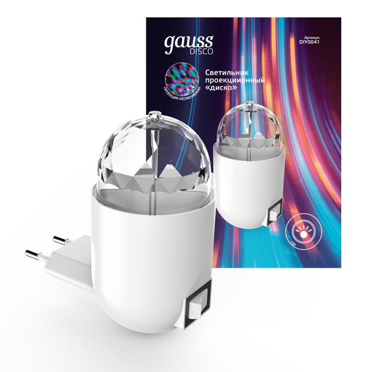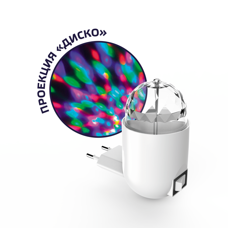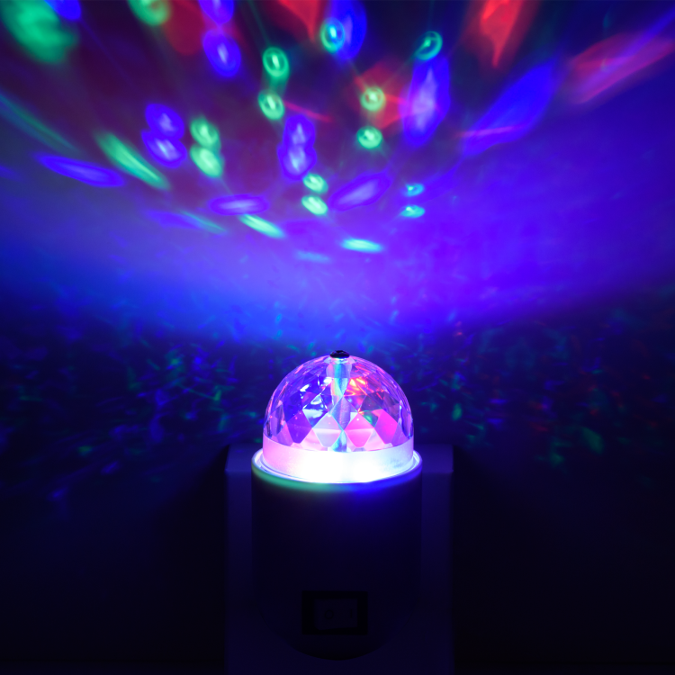 Светильник розеточный проекционный "Диско" 3W прекрасно выполнит функцию ночника в детской и подростковой спальне. Он так же может быть использован в качестве дополнительного аксессуара на вечеринке. У светильника на корпусе предусмотрен выключатель, что позволяет оставлять его в розетке на постоянном месте. Светильник имеет функцию вращения без смены цветовых вариаций. Корпус изготовлен из прочного пластика, линза - прозрачный пластик с имитацией кристаллов.