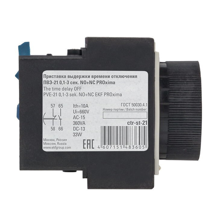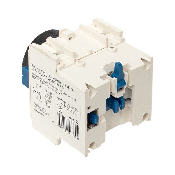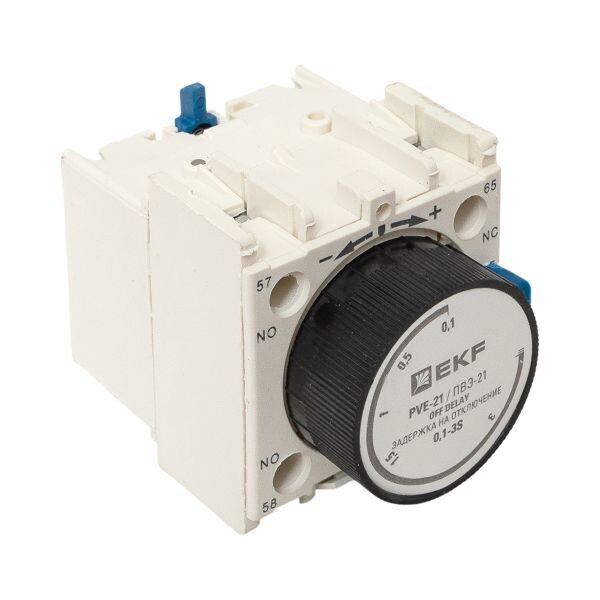 Позволяют получить задержку замыкания или размыкания вспомогательной цепи от 0,1 до 180 с. Приставка имеет один нормально разомкнутый (NO) и один нормально замкнутый (NC) контакт. Контактная приставка механически соединяется с контакто- рами и фиксируется при помощи защелки. Способ крепления обеспечивает жесткую и надежную связь между контактной приставкой и контактором.
