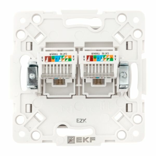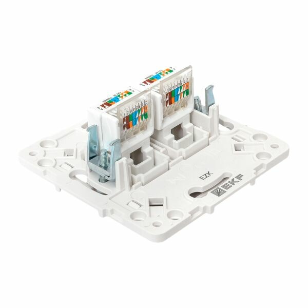 Розетка двойная RJ45 EKF EYK02-035-10 "Стокгольм" (кат. 5Е, IP20) скрытой установки, белый