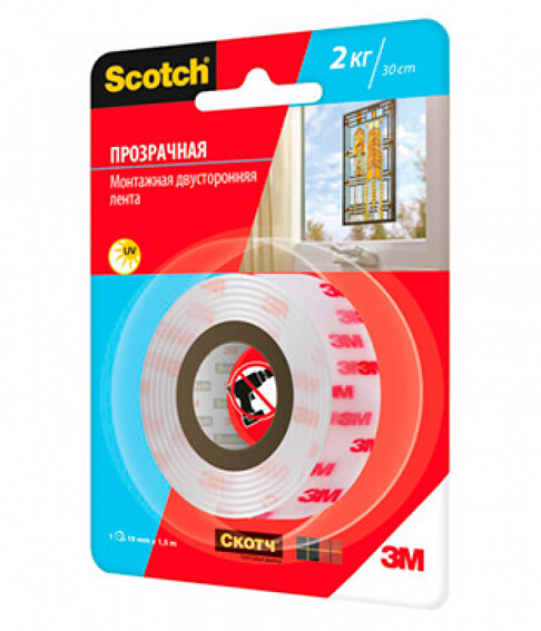 Скотч двухсторонний акриловый 19мм*1,5м прозрачный стойкий к УФ