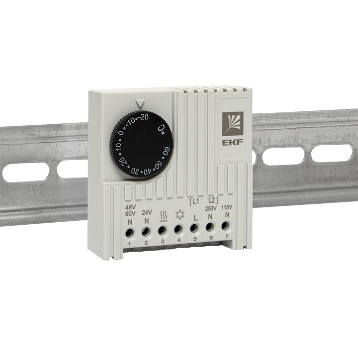Термостат предназначен для поддержания фиксированной температуры внутри электрощитов. Предназначен для управления исполнительными устройствами: обогревателями или вентиляторами, также для оповещения о превышении предельной температуры с помощью перекидного контакта NO/NC.