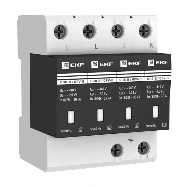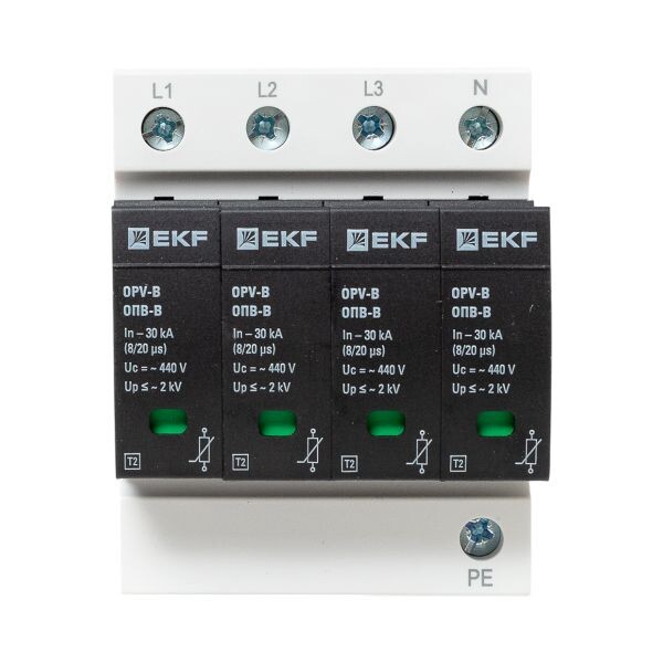 УЗИПы серии ОПВ относятся к классу II и применяются для защиты токораспределительной сети объекта от коммутационных помех или как вторая ступень защиты при ударе молнии. Тип "B" характеризуется номинальным разрядным током 30кА, максимальным разрядным током 60кА с формой волны 8/20 мкс.