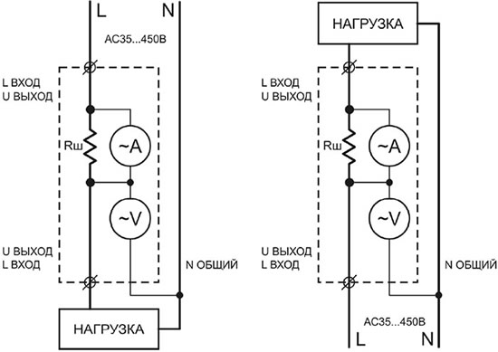 Проводник с измеряемым током подключается к клеммам L ВХОД и U ВЫХОД (сверху вниз или снизу вверх, не имеет значения).