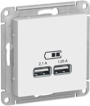 Розетка USB Schneider Electric ATN000133 AtlasDesign (5 В / 2100 мА, 2 х 5 В / 1050 мА) скрытой установки, белый