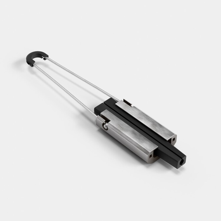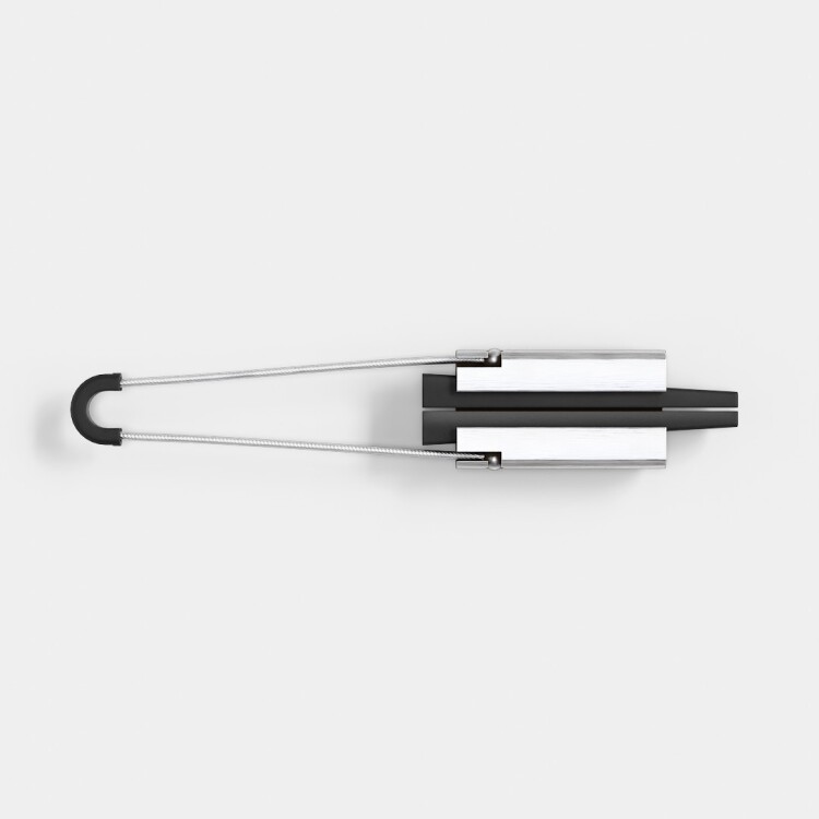 Предназначен для крепления изолированной нулевой несущей жилы (СИП-2) на анкерных и анкерно-угловых опорах. Зажим обеспечивает надежную фиксацию и удержание проводов путём натяжения при монтаже воздушных линий электропередач. Крепится на опорах с помощью крюков и кронштейнов. Установка зажима производится благодаря наличию тросика. Корпус выполнен из алюминиевого сплава методом экструзии, что обеспечивает высокую надежность зажима и его устойчивость к механическим воздействиям. Саморегулирующиеся клинья из полимера, устойчивого к ультрафиолетовому излучению, выполнены с особым рельефом, надежно фиксирующим проводник, не повреждая изоляцию. В месте установки зажима защитная изоляция с жилы не снимается, тем самым, герметичность провода не нарушается. Тросик из нержавеющей стали, с шаровыми креплениями на обоих концах для удобства монтажа и надежной фиксации, имеет специальную накладку (коуш), защищающую его от износа при креплении на кронштейне (крюке). Установка зажима производится без инструментов. Обладает высокой прочностью, устойчивостью к ультрафиолету, коррозии, воздействию экстремальных температур, влажности и другим погодно-климатическим факторам.