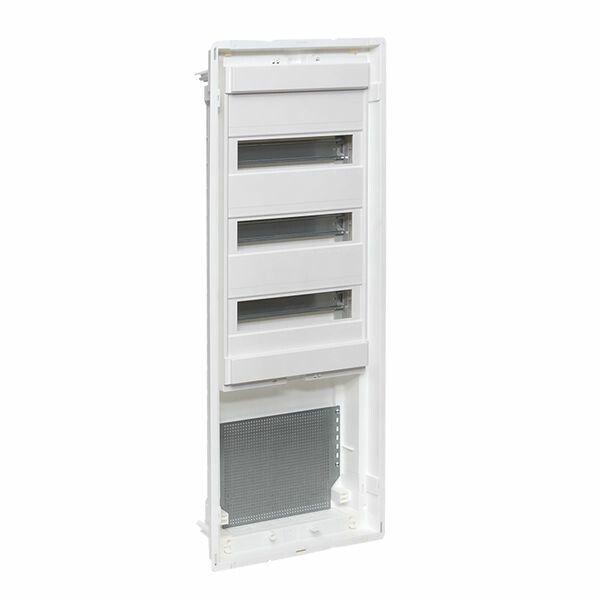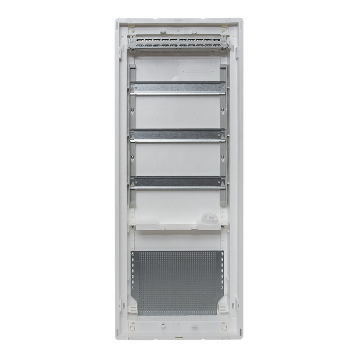 Корпуса пластиковые серии «Nova» предназначены для сборки силовых, слаботочных и комбинированных щитов. На DIN-рейки устанавливается модульное оборудование. На монтажные платы – антенные разветвители, Wi-Fi роутеры, патч-панели и иное слаботочное оборудование. Щиты устанавливаются как в бетонные и кирпичные стены, так и в гипсокартон, монтажные комплекты для установки в гипсокартон входят в комплектацию оснований щитов либо в комплектацию щитов в сборе. Двери щитов можно выбрать их разных материалов – пластик, металл или металл с перфорацией. Также доступны дополнительные аксессуары, необходимые для установки мультимедийного оборудования и существенно упрощающих монтаж щитов. Есть возможность приобрести как отдельно основание щита и дверь, так и основание с дверью в комплекте в одной коробке. Основные преимущества: съемные шасси с din-рейками, съемные кабельные фланцы, гребенка для фиксации входящих проводников, регулировка дверей по глубине, современный минималистичный дизайн