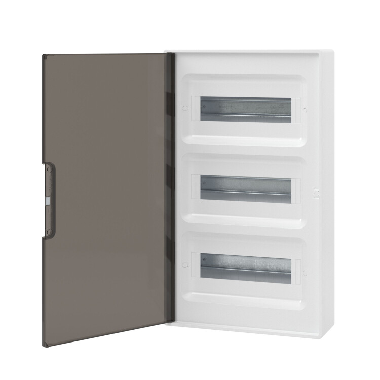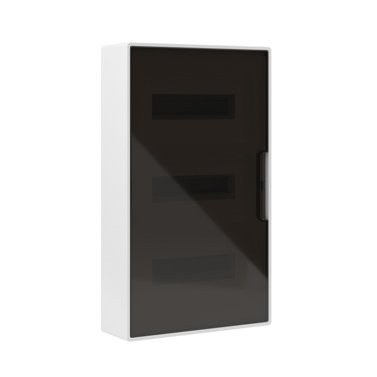 Щиток «Фрейм» (FRAME) предназначен для монтажа в жилых и административных помещениях. Применяется для установки модульных устройств. Установка стандартных латунных шин возможна по всем стенкам корпуса щитка. Единый корпус шинодержателя можно разделить на сегменты, и использовать отдельно. Симметричный корпус щитка позволяет открывать дверь слева или справа. Количество модулей — 36. Цвет корпуса белый, цвет двери — тонированная, ширина — 311,6 мм, высота — 529,1 мм, глубина — 102,8 мм. Материал — термостойкий и ударопрочный пластик. В комплекте: DIN-рейка из гальванической оцинкованной стали, сборочные винты для сборки щитка, 4 шины PEN 2 на 8 отверстий + 2 на 10 отверстий, 2 шинных держателя на 7 сегментов, наклейки для маркировки, инструкция по сборке.