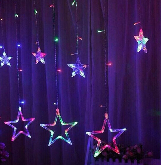 Светодиодная гирлянда бахрома SnowHouse DCLLD-138M-C состоит из основного прозрачного провода, закрепляемого горизонтально, с которого свисают отрезки провода разной длины с led-насадками в форме звезд.