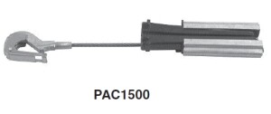 - Тросик зажима PAC 1500 выполнен из нержавеющей стали, зафиксирован в корпус зажима и снабжен крюком для подвешивания и блокировки на кронштейне без снижения механического тяжения.
