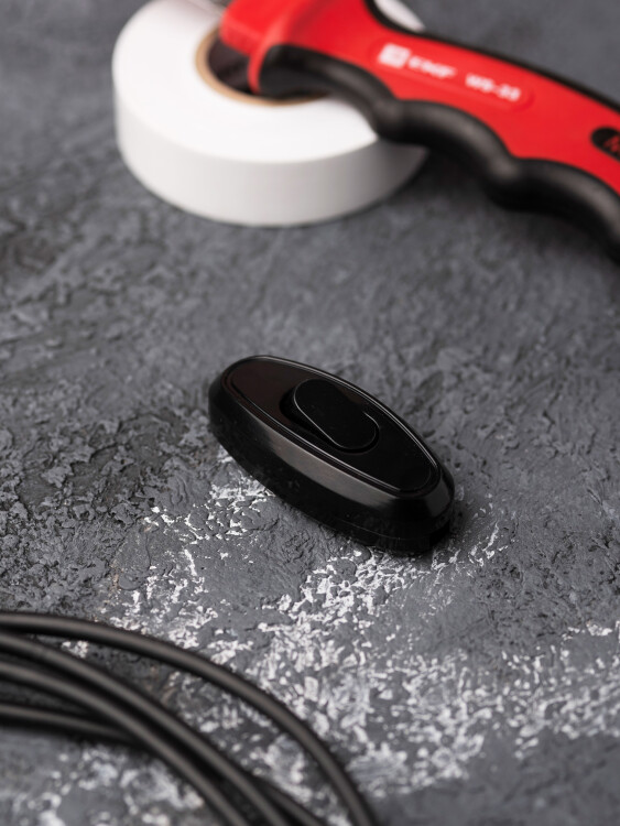 Выключатель-кнопка ON-OFF Rexant 36-3018 (250 В, 2 А) на электропровод для настольной лампы, черный