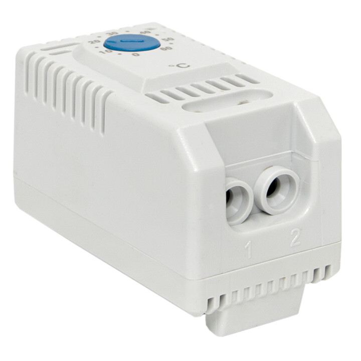 Термостат предназначен для поддержания фиксированной температуры внутри электрощитов. Нормально-разомкнутый контакт предназначен для управления исполнительными устройствами (вентиляторами), а также для оповещения о превышении предельной температуры.
