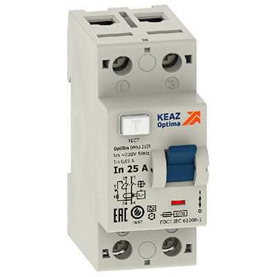 Выключатель дифференциальный (УЗО) 2Р 25А 30мА AC 6кА DM63 КЭАЗ OptiDin