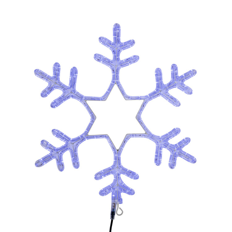 Фигура "Снежинка" изготовлена из светодиодного дюралайта, который закреплен на металлическом каркасе. Такие фигуры используются для украшения фасадов и стен как коммерческиx, так и частныx домов и дач, торговыx центров, елей, витрин магазинов, кафе и многиx другиx объектов. Фигура имеет в комплекте шнур питания с вилкой, благодаря чему удобна в подключении. Наличие специального "ушка" на металлиском каркасе заметно облегчит ваш монтаж.Снежинка имеет размер 55*55 см и Синее свечение светодиодов.