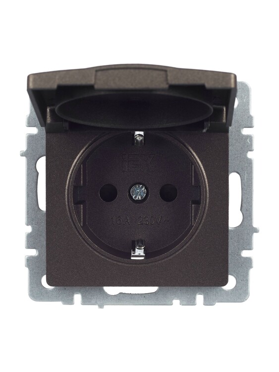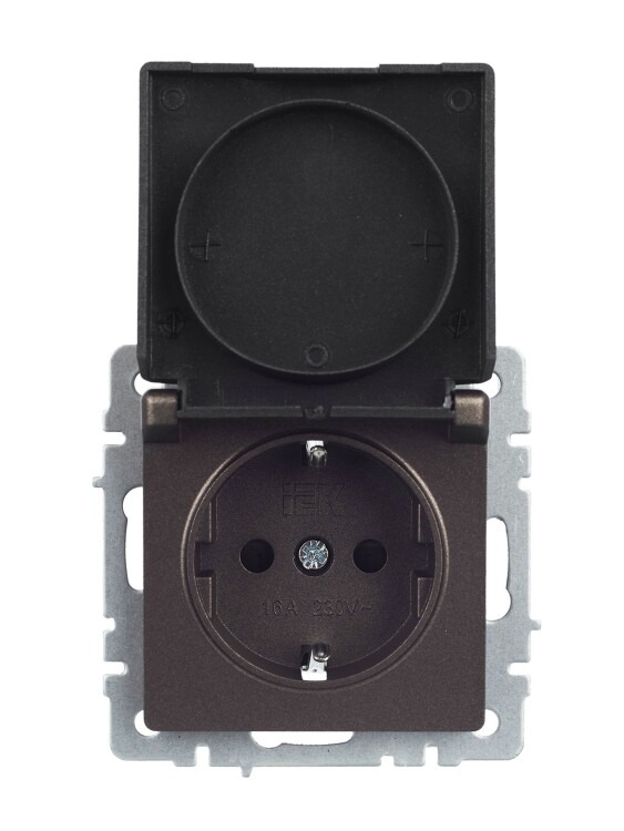 Брайт бронза розетка скрытая 1-мест заземление с крышкой шторки IP20