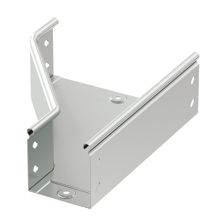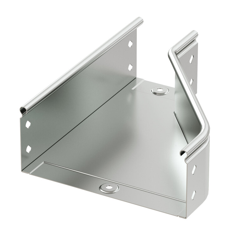 Элементы, входящие в состав системы "S5 Combitech" позволяют предусмотреть любые особенности проектирования и монтажа трассы. При построении кабельных трасс может возникать ситуация, когда требуется увеличить или уменьшить ширину лотка. Для этого применяется переходник (редукция) – аксессуар, имеющий разную ширину в начале и в конце. Левосторонняя редукция – аксессуар, который расширяется с левой стороны. Такой конструктив позволяет размещать переходник вплотную к стене.