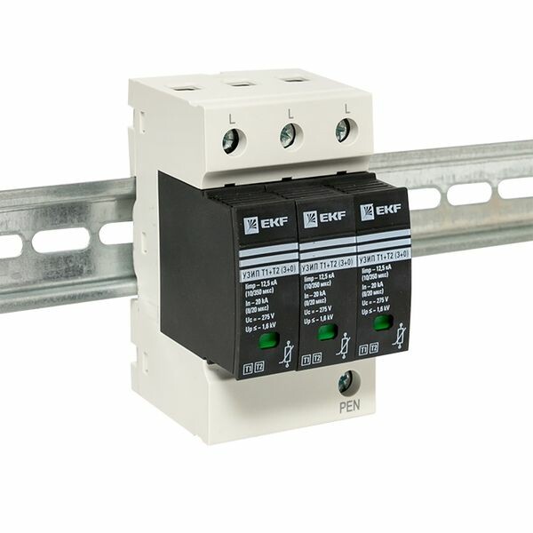 Устройство УЗИП Т1+Т2 предназначено для защиты от прямых ударов молнии в ВЛ или в систему внешней молниезащиты и срабатывает в качестве 2-ой ступени защиты при ударе молнии, позволяя защитить большую часть электронного и электрического оборудования.