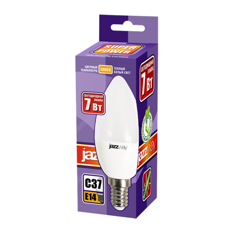 Лампа свеча свд Е14 7Вт 3000К 560лм С37 матовая Jazzway