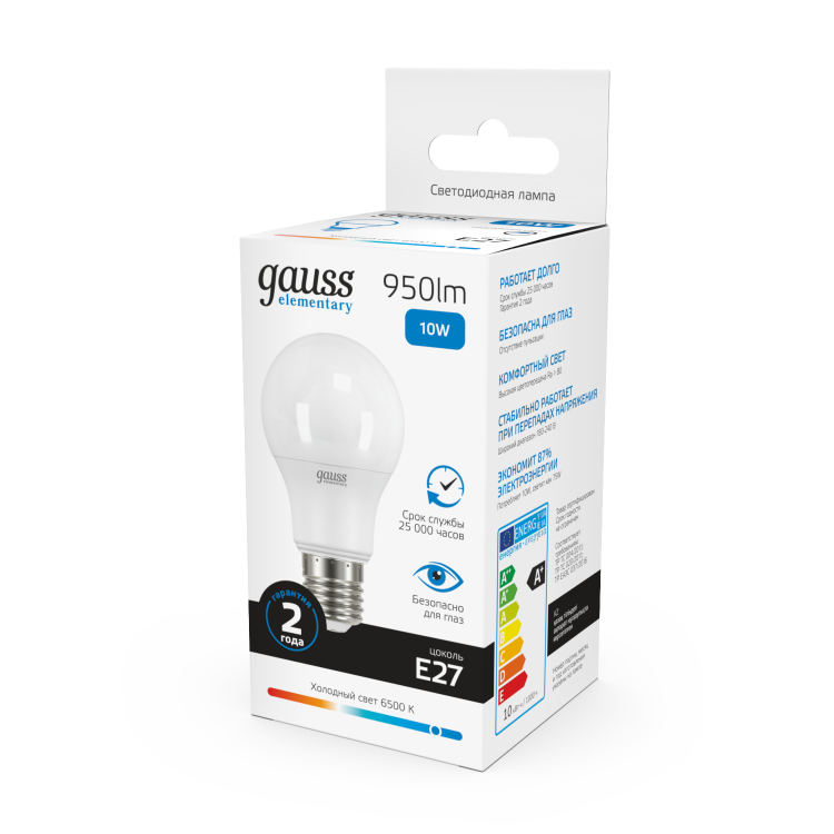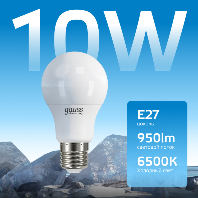 Лампа Gauss Elementary A60 при скромном потреблении в 10 Вт обладает солидной силой светового потока, который проникнет в каждый уголок помещения, создавая равномерное освещение с достаточной яркостью и чистотой света. Цветовая температура 6500К добавит ощущение свежести и энергии всему пространству.