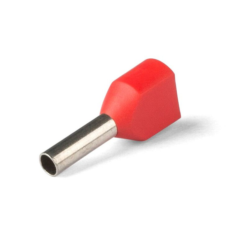 Для монтажа сдвоенных проводов одинакового сечения.Предназначены для оконцевания методом опрессовки гибких многопроволочных медных проводников. Трансформируют концы многожильных проводов в монолитные штифты.Современная альтернатива обязательному облуживанию концов многожильных проводников при подсоединении к клеммам.Размеры изолированных манжет и втулок наконечников НШВИ(2) рассчитаны для монтажа и подключения двух проводников.В условиях высокой плотности монтажа двойные втулочные наконечники являются единственно возможным контактным соединением двух проводников.Материал коннектора: медь марки М1.Покрытие коннектора: электролитическое лужение.Материал изоляции: полипропилен. Не содержит галогенов.Термостойкость изоляции: 105 C.Цвет изолирующих манжет выполнен в соответствии с цветовой маркировкой DIN 46228, часть 4.Одинарные и двойные втулочные наконечники КВТ представлены в одинаковой цветовой гамме стандарта DIN, что облегчает их поразмерную идентификацию.Коническая форма манжеты, тип Easy Entry, облегчает заведение многожильного провода внутрь медной втулки.Обжим провода поверх медной втулки.