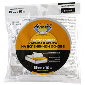 - Двусторонняя клейкая лента на вспененной основе используется на шершавых, грубых, неплоских поверхностях; рекомендована для предметов и материалов на вертикальных поверхностях.