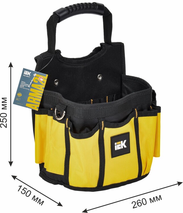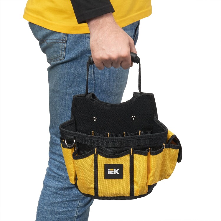 Сумка монтажника открытого типа BG-05 предназначена для комфортного проведения верховых работ, а также для хранения инструмента. Сумка выполнена из ткани полиэстер 1680D Оксфорд с PVC-пропиткой. Резиновая ручка, есть крепление на ремень или пояс. У сумки откидное жесткое дно с резиновыми ножками.
