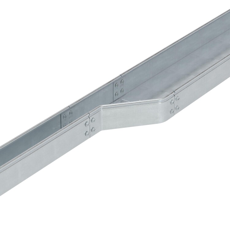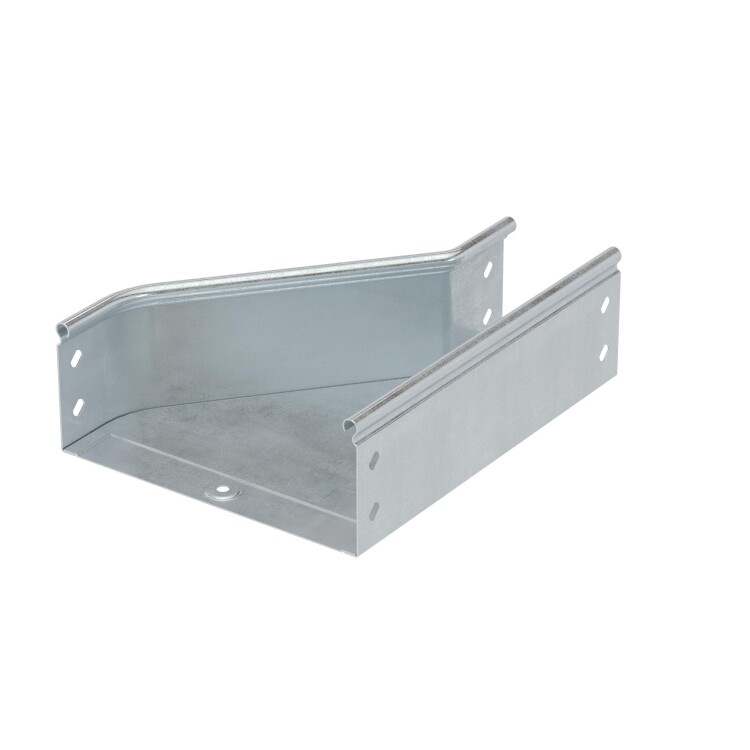 Элементы, входящие в состав системы "S5 Combitech" позволяют предусмотреть любые особенности проектирования и монтажа трассы. При построении кабельных трасс может возникать ситуация, когда требуется увеличить или уменьшить ширину лотка. Для этого применяется переходник (редукция) – аксессуар, имеющий разную ширину в начале и в конце. Правосторонняя редукция – аксессуар, который расширяется с правой стороны. Такой конструктив позволяет размещать переходник вплотную к стене.