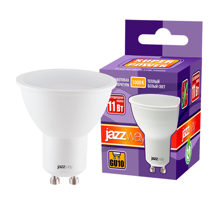 Лампа свд 220В GU10 11Вт 3000К 900лм PAR16 матовая Jazzway