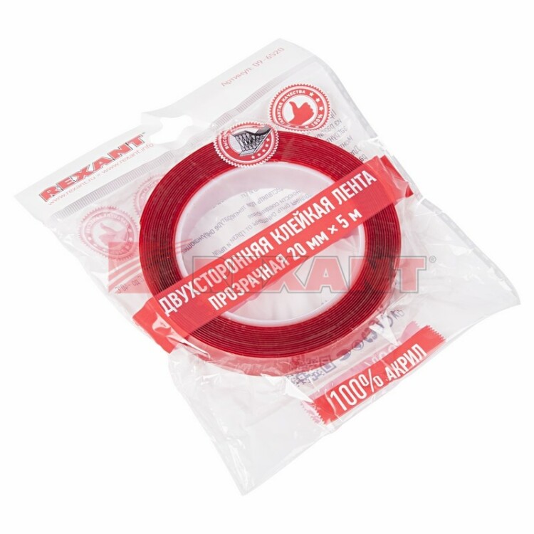 Скотч двухсторонний акриловый 20мм*5м прозрачный стойкий к УФ Rexant