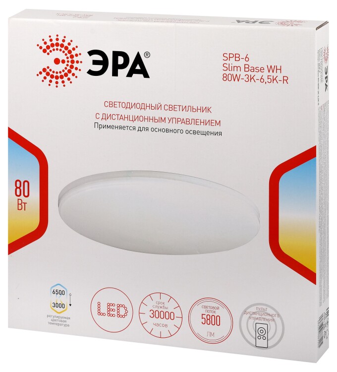 Светодиодный светильник ЭРА SPB-6 Slim Base WH 80W-3K-6,5K-R – современное решение для общего освещения жилых и коммерческих помещений.