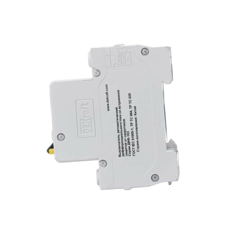 Автоматическими выключателями дифференциального тока серии ДИФ-103 DEKraft; 1N+P; номинальный ток 25 А; ном.дифф. ток 30 мА; тип дифференциального расцепителя - AC; кривая отключения - С; на DIN-рейку.
