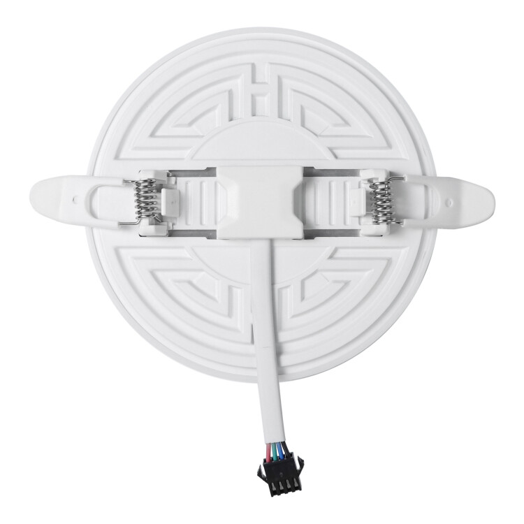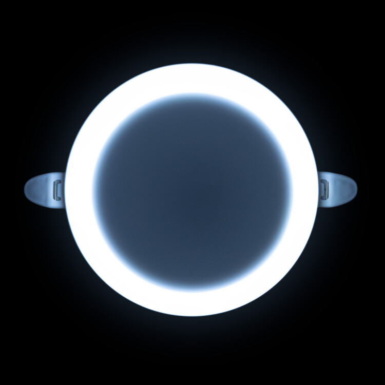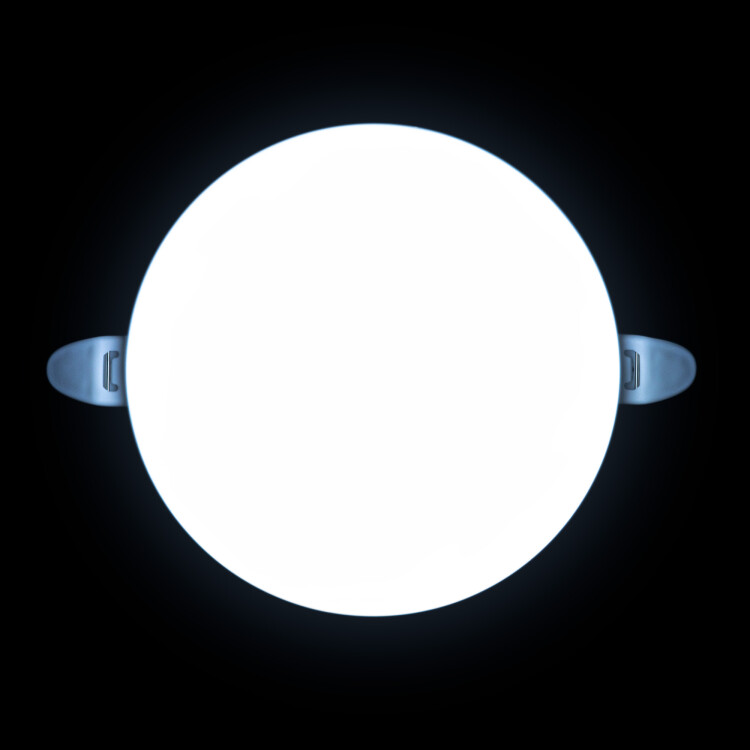 Светодиодная встраиваемая безрамочная панель 06-107 излучает световой поток в 1360 Лм, потребляя при этом 16 Вт (12Вт+4Вт), что в итоге дает энергоэффективность 85 Лм/Вт. Особенностью данного изделия является 3-х ступенчатая регулировка уровня освещенности путем нажатия клавиши выключателя: 1) освещение всей поверхности плафона, угол рассеивания 180°; 2) концентрированное освещение внутреннего диаметра, угол рассеивания 120°; 3) засветка торцевой части панели, эффект «кольцевого освещения». Вторая особенность панели – регулировка крепежных зажимов под посадочное отверстие Ø55-105 мм. Третья особенность – безрамочный дизайн плафона, благодаря чему возможна повышенная освещенность с углом рассеивания 180°. Размер изделия Ø120х21мм. Цветовая температура 6500К повышает концентрацию, настраивает на рабочий лад. Отдельный от корпуса драйвер имеет компактный размер. А благодаря удобному коннектору для соединения со светильником может быть легко заменен. Панель по способу монтажа является встраиваемой.
