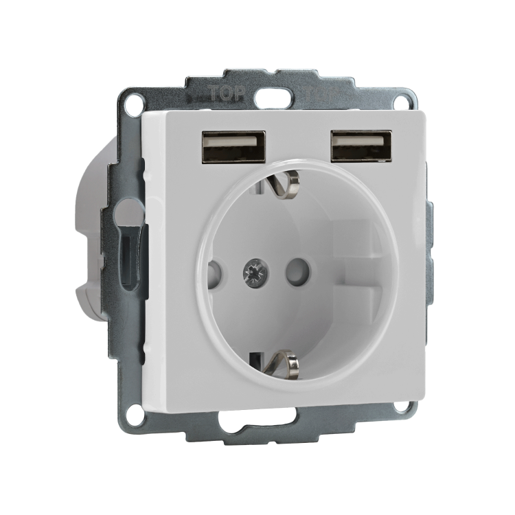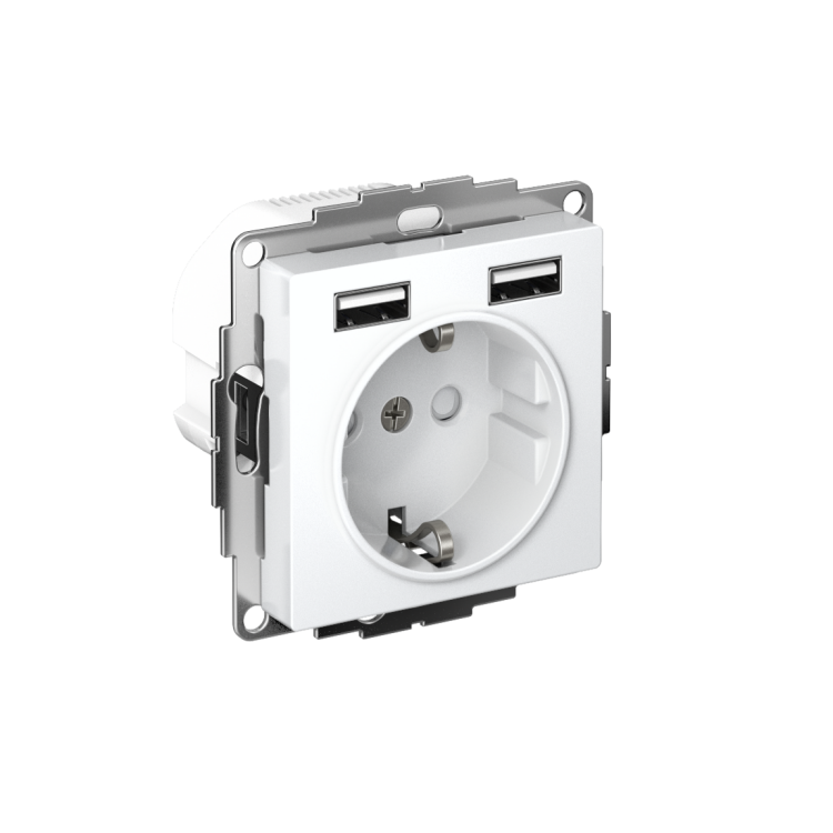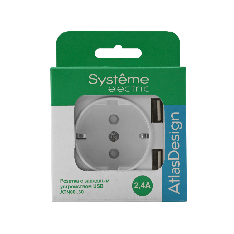 Розетка силовая Systeme Electric (ранее Schneider Electric) серии AtlasDesign 16А в цвете белый с заземлением и шторками с ро зеткой USB, с двумя разъемами типа А. Пластик с ионами серебра в белом цвете обеспечивает антибактериальный эффект. Заземляющий контакт обеспечивает дополнительную защиту от удара электрическим током. Шторки обеспечивают дополнительную безопасность в доме, где находятся дети. Один механизм позволяет как подключить бытовые приборы, так и зарядить мобильные устройства.