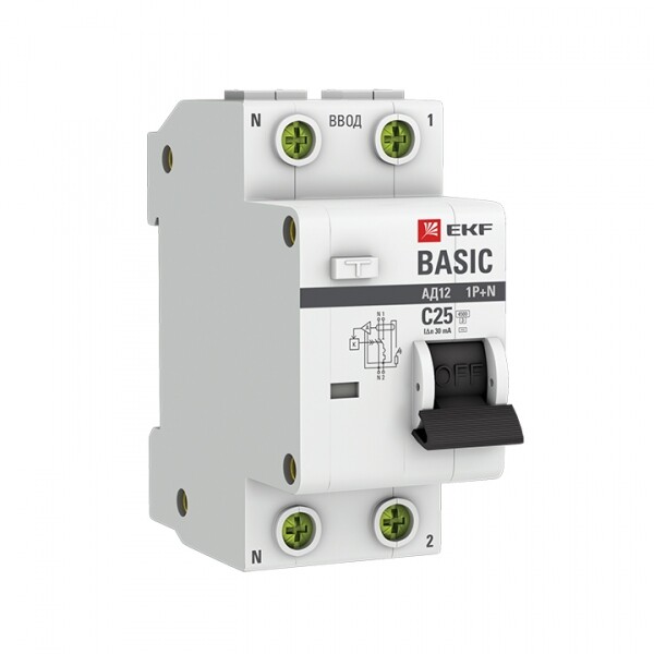 Выключатели автоматические дифференциального тока (дифавтоматы) АД-12 EKF серии Basic представляют собой аппараты, сочетающие функции автоматического выключателя с устройством защитного отключения. При обнаружении автоматическим выключателем в защищаемом участке сети тока утечки (повреждения) на землю или сверхтока (тока перегрузки или короткого замыкания) происходит срабатывание устройства, приводящее к отключению защищаемой сети.