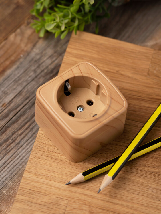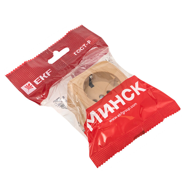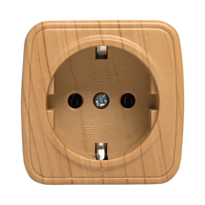 Розетка одноместная EKF EGR16-028-30 "Минск" (16 А, IP20) открытой установки, с заземлением, светлое дерево