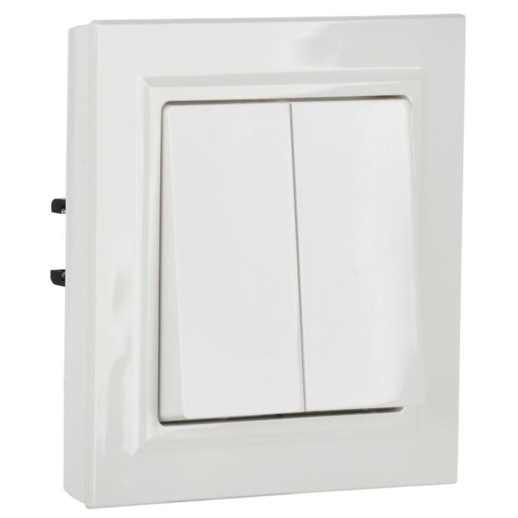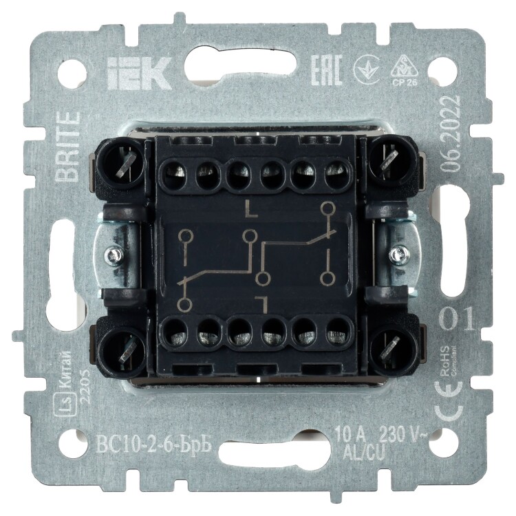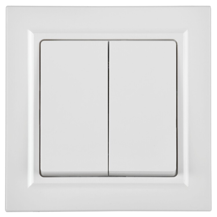 Выключатель двухклавишный проходной IEK ВС10-2-6-БрБ Brite (10 А, IP20) скрытой установки, белый