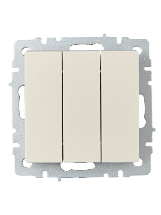 Выключатель трехклавишный IEK ВС10-3-0-БрКр Brite (10 А, IP20) скрытой установки, бежевый