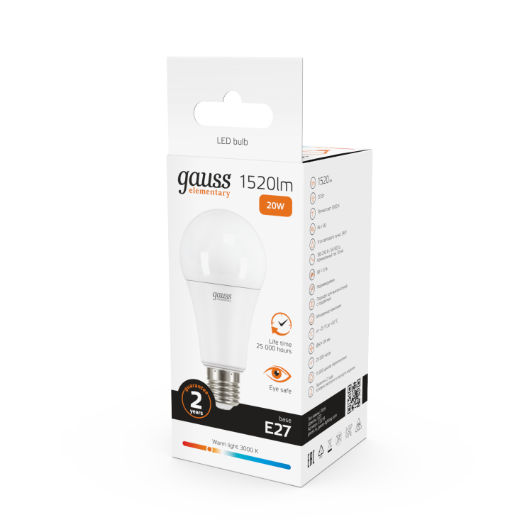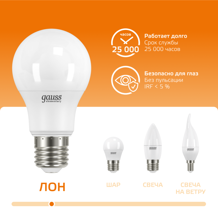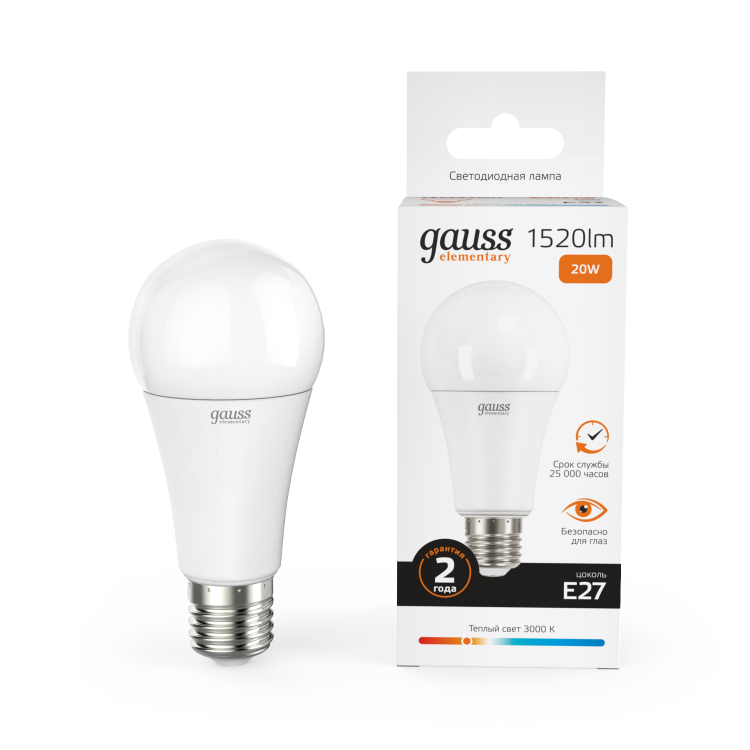 Лампа Gauss Elementary A60 дарит вам качественное и сочное освещение с солидной яркостью. Теплая цветовая температура 3000К комфортна и привычна для наших глаз, способствует продуктивной работе с документами без переутомления. Дополнительным плюсом современных технологий является отсутствие пульсаций. Лампа прекрасно подойдет для использования в любом помещении – от домашнего кабинета до приветливого холла.