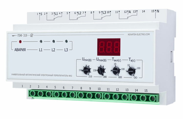 переключатель фаз 32А , прямое включение, либо через пускатели , индикация. ( 9 DIN)
