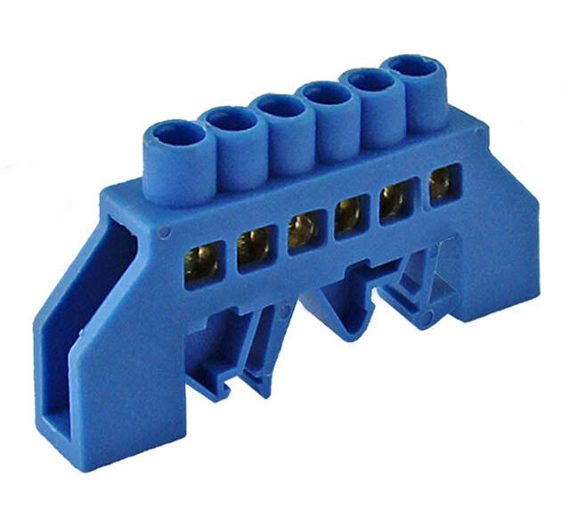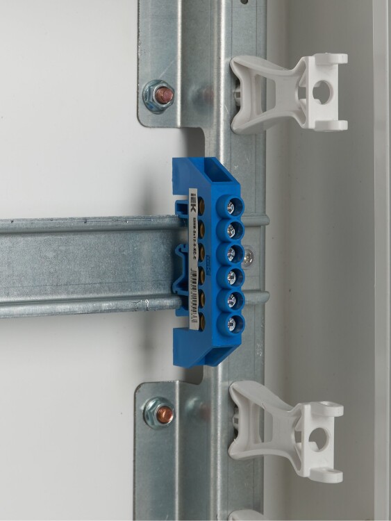 Шина нулевая 8*12 6групп комбинированный DIN-изолятор типа "Стойка" синий винтовой на DIN-рейку IEK