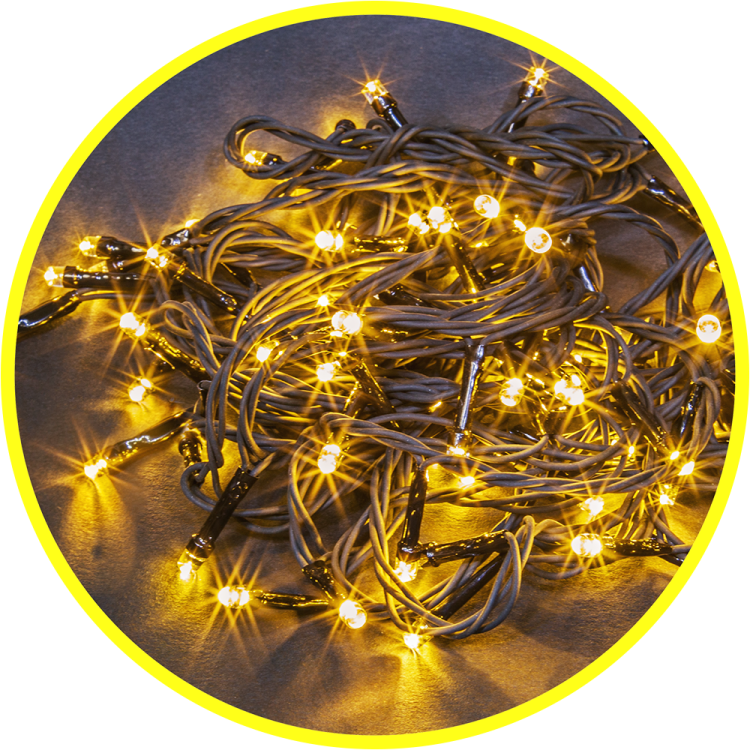 тип гирлянды- нить; цвет свечения - теплый белый; 8 режимов свечения; общая длина - 9,5 м; длина провода до первого светодиода - 1,5 м; количество светодиодов - 100 шт; расстояние между светодиодами - 8 см; тип провода - черный каучук; степень защиты - IP44; температура эксплуатации от -40 до +40°С; срок службы - 50000 часов; гарантия - 12 месяцев.